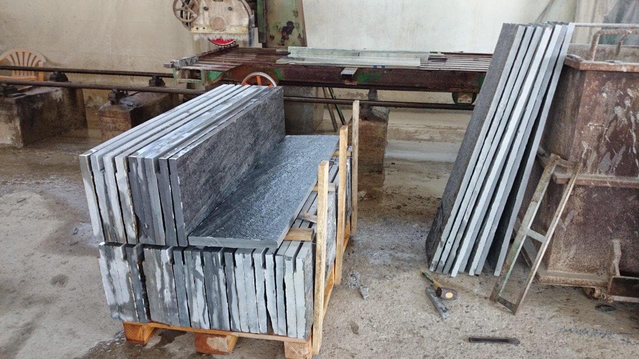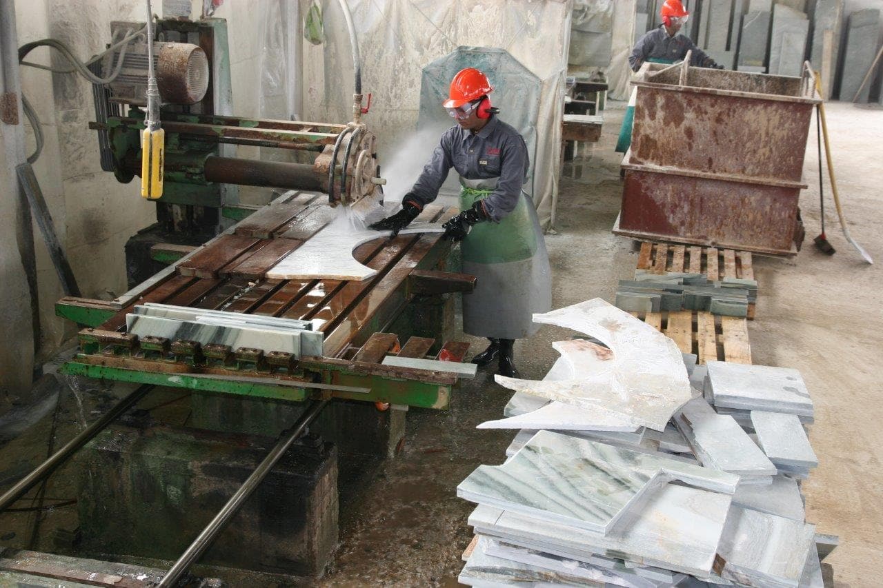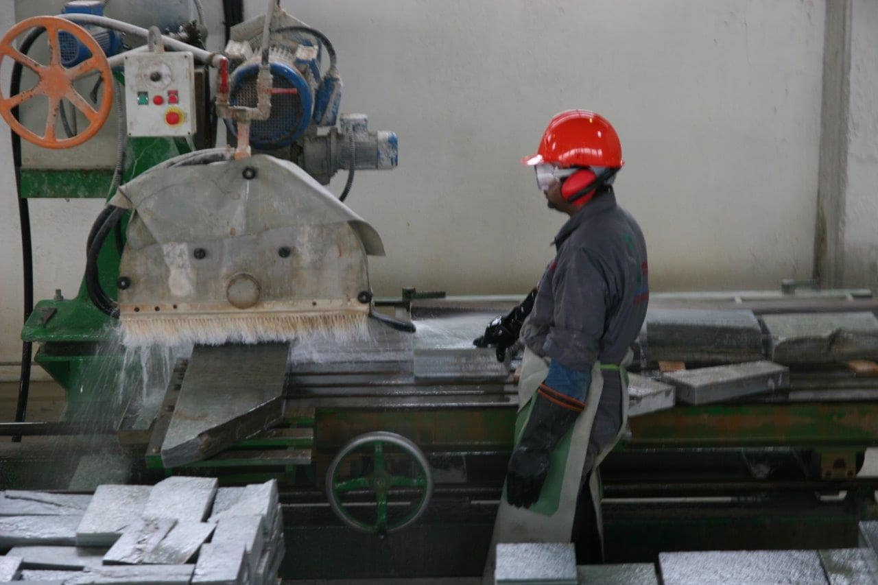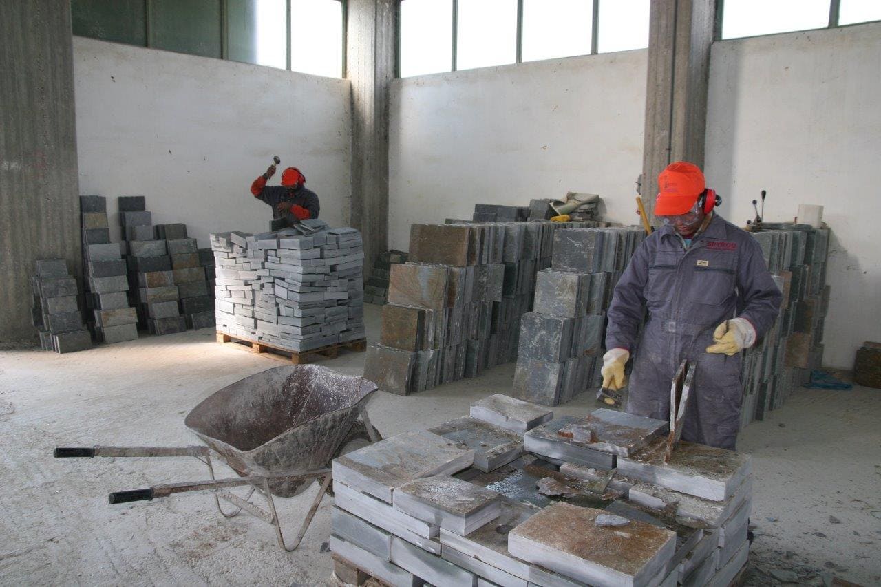 Στο εργοστάσιο γίνεται παραγωγή και επεξεργασία των προϊόντων μας. Καθημερινά επεξεργαζόμαστε περισσότερα από 1000m2 ακανόνιστων πλακών για πώληση εφαρμόζοντας το Σύστημα Διαχείρισης Ποιότητας. Όλα μας τα προϊόντα φέρουν σήμανση CE η οποία πιστοποιεί ότι είναι κατάλληλα για τη χρήση που προορίζονται σύμφωνα με την ισχύουσα Ευρωπαϊκή και Ελληνική Νομοθεσία.